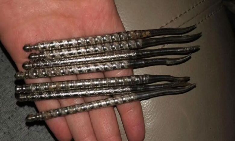 These mysterious metal sticks turned out to be nutcrackers from the 1940s or 1950s, designed to extract nuts from their shells. Although they could be used for any type of nut, they were particularly useful for eating chestnuts.