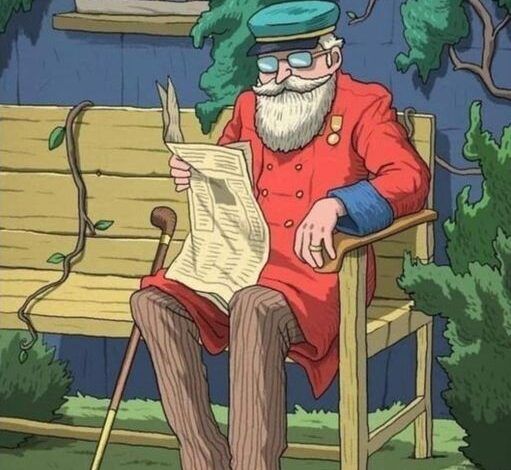 In the picture below, thereโs an elderly man happily sitting on a bench in front of his warm and inviting house. The scene is really calm, but thereโs a little issue: his favorite pipe is nowhere to be found! Heโs so focused on reading his newspaper that he hasnโt realized itโs missing. Can you help him locate it in just one minute?