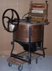 It’s a washing machine once the clothes are washed you take Each utem and go into the wringer and then your done my friend mom would Have it’s drain out in the toilet